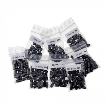 Zestaw testowy ZAN Projectiles zawierający w sobie 30 sztuk ołowianych pocisków kalibru 5,53 mm (.218) typu Slug (Breneka) w 8 dostępnych gramaturach. Przeznaczony do testowania precyzyjnych wiatrówek PCP. Będzie to idealne rozwiązanie dla strzelców pragnących dopasować wagę śrutu do lufy oraz ciśnienia roboczego swojej wiatrówki. Kompletny pakiet różnorodnych śrutów ułatwi Ci takie ich dobranie, aby miało to przełożenie na najlepszą celność i stabilny tor lotu pocisku.