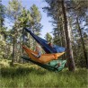 Wykonany z nylonu spadochronowego 70D, hamak jest nie tylko oddychający i elastyczny, ale także odporny na pleśń oraz szybkoschnący – sprawdza się więc w każdych warunkach pogodowych. Potrójne szwy zwiększają jego trwałość, a maksymalne obciążenie 200 kg gwarantuje bezpieczeństwo i stabilność. Oddychający materiał dopasowuje się do ciała, wspierając krążenie krwi i zapobiegając przegrzaniu, co czyni odpoczynek wyjątkowo komfortowym. W bocznej kieszeni bez trudu schowasz drobiazgi, a wbudowany Express Setting Bag pełni rolę nie tylko pokrowca, ale również wygodnej poduszki.