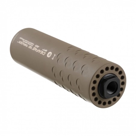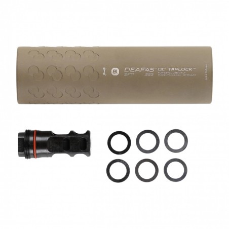 Tłumik dźwięku BK Precise DEAF45 został skonstruowany z myślą o wykorzystaniu pod intensywnym ogniem na broni samopowtarzalnej. Wykorzystana technologia Side Flow nie tylko ogranicza odrzut, ale również przegazowanie broni, dzięki czemu podczas dynamicznych strzelań nie będziemy skazani na oddychanie gazami wentylującymi się przy naszej twarzy. Powierzchnia urządzenia została pokryta najpopularniejszym systemem powłok ceramicznych - Cerakote - który gwarantuje zabezpieczenie przed kwaśnym środowiskiem tworzonym przez pozostałości prochu. Bazowy hamulec wylotowy otrzymał natomiast elektrochemiczną powłokę Tenifer, zabezpieczającą go zarówno przed korozją, jak i wycieraniem pod wpływem kontaktu z tłumikiem.