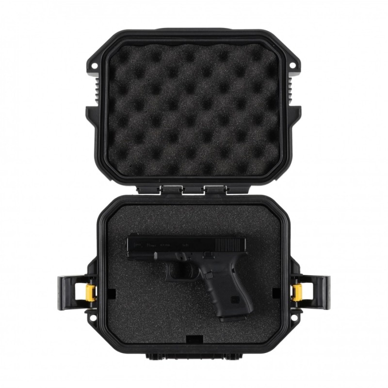 Korpus futerału wykonano z tworzywa odpornego na wgniecenia i zarysowania, co sprawia, że poradzi sobie zarówno z trudami podróży, jak i przechowywania. Dwie klamry z dwustopniowym systemem zatrzaskowym, gwarantują pełne bezpieczeństwo. Dodatkowy tunel pozwala na zamontowanie kłódki, dzięki czemu Twoja broń krótka jest chroniona nie tylko przed warunkami zewnętrznymi, ale także przed dostępem osób niepowołanych.