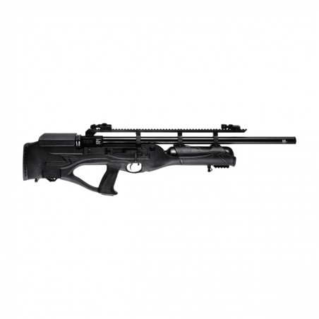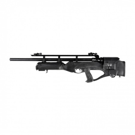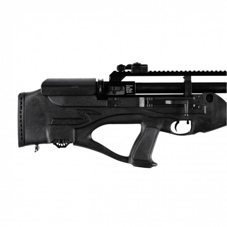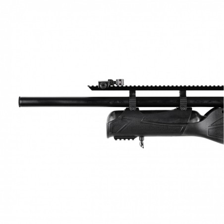 Wiatrówka PCP Optima by Hatsan Bully 11,43 mm to karabinek pcp w układzie bullpup, wyposażony w precyzyjną czokowaną lufę ze zintegrowanym moderatorem dźwięku, ergonomiczną kolbę thumbhole oraz regulowany 2-stopniowy mechanizm spustowy.