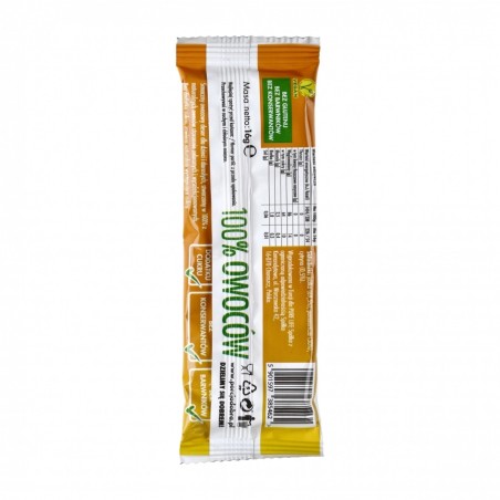 Przekąska zawiera jedynie naturalne cukry, a forma listka ważącego jedynie 16 g zapewnia możliwość łatwego przenoszenia.