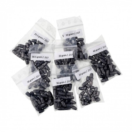 Zestaw testowy ZAN Projectiles zawierający w sobie 30 sztuk ołowianych pocisków kalibru 5,5 mm (.217) typu Slug (Breneka) w 8 dostępnych gramaturach. Przeznaczony do testowania precyzyjnych wiatrówek PCP. Będzie to idealne rozwiązanie dla strzelców pragnących dopasować wagę śrutu do lufy oraz ciśnienia roboczego swojej wiatrówki. Kompletny pakiet różnorodnych śrutów ułatwi Ci takie ich dobranie, aby miało to przełożenie na najlepszą celność i stabilny tor lotu pocisku.