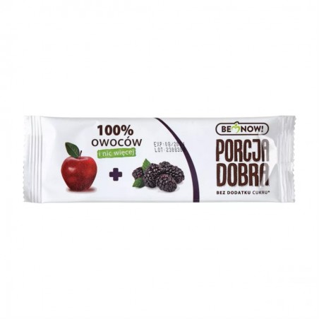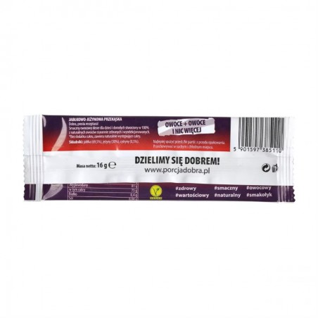 Przekąska Porcja Dobra w formie listka o smaku owocowym jabłkowo-jeżynowym to interesująca propozycja dla dzieci i dorosłych.
