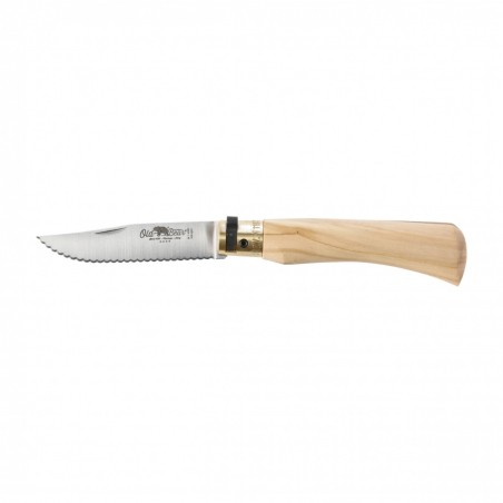 Rękojeść została wykonana z jednego kawałka włoskiego drewna oliwnego, znanego z pięknej, ciepłej barwy i naturalnego usłojenia. Ergonomiczny kształt sprawia, że nóż skłądany doskonale leży w dłoni i nie powoduje zmęczenia nawet podczas dłuższego użytkowania. To połączenie praktycznej wygody z eleganckim wyglądem, które czyni nóż Old Bear nie tylko narzędziem, ale i estetycznym dodatkiem dla pasjonatów życia w zgodzie z naturą.
