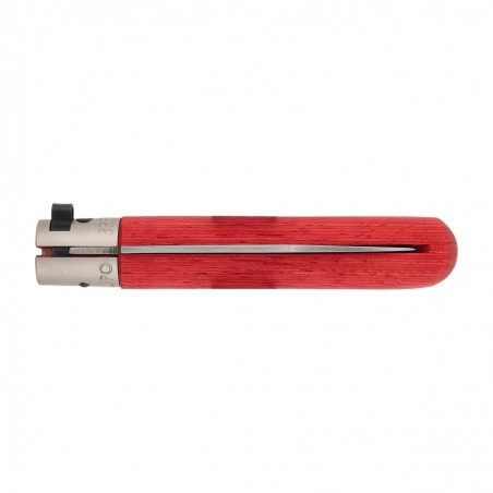 Rękojeść został wykonana z jednego kawałka naturalnego drewna oliwnego, znanego z wyjątkowej trwałości i atrakcyjnego, jasnego wybarwienia. Powierzchnia zabezpieczona olejem technicznym chroni przed wilgocią i nadaje materiałowi odporność na codzienne użytkowanie. Ergonomiczny kształt rękojeści zapewnia wygodny i pewny chwyt, dzięki czemu nóż nie męczy dłoni nawet podczas dłuższego używania.