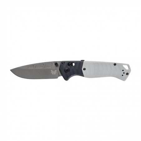 Nóż Benchmade 593GY 02 PSK został wyposażony w ostrze ze stali nierdzewnej Elmax i hartowaniu na poziomie 59 - 61 HRC, które zostało pokryte dodatkowo powłoką ochronną Cerakote.