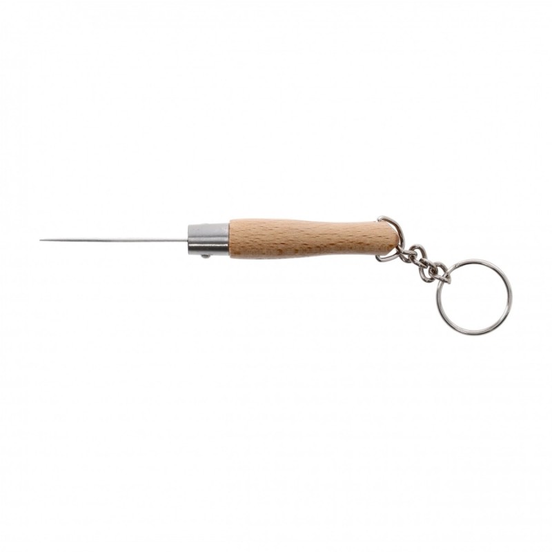 Do wykonania rękojeści zastosowano drewno francuskiego buka, z powłoką lakierniczą chroniącą przed zabrudzeniem i działaniem wilgoci. Rękojeść ma tradycyjny owalny profil, który rozszerza się na końcu, dzięki czemu nóż wygodnie i pewnie leży w dłoni. Nóż można zamocować do kluczy za pomocą stalowego kółka.