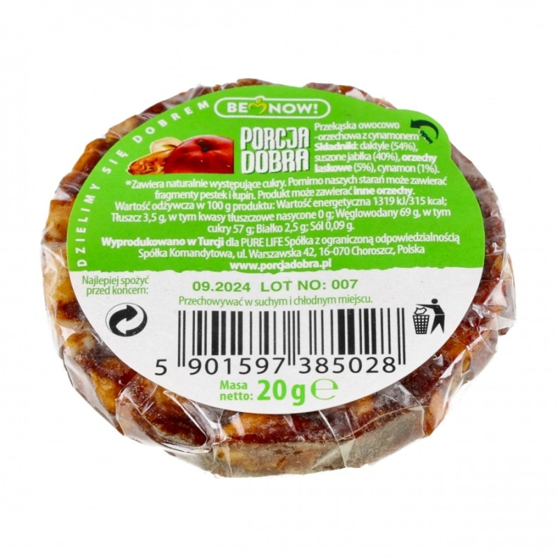 Porcja Dobra Krążki bez cukru to przekąski stworzone z prasowanego miksu suszonych owoców i świeższych, posiekanych orzechów. Krążek stanowi świetną alternatywę dla przekąsek dosładzanych białym cukrem.