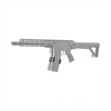 Podwójna pojemność – umożliwia łączenie dwóch magazynków, co znacząco zwiększa ilość dostępnej amunicji.