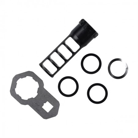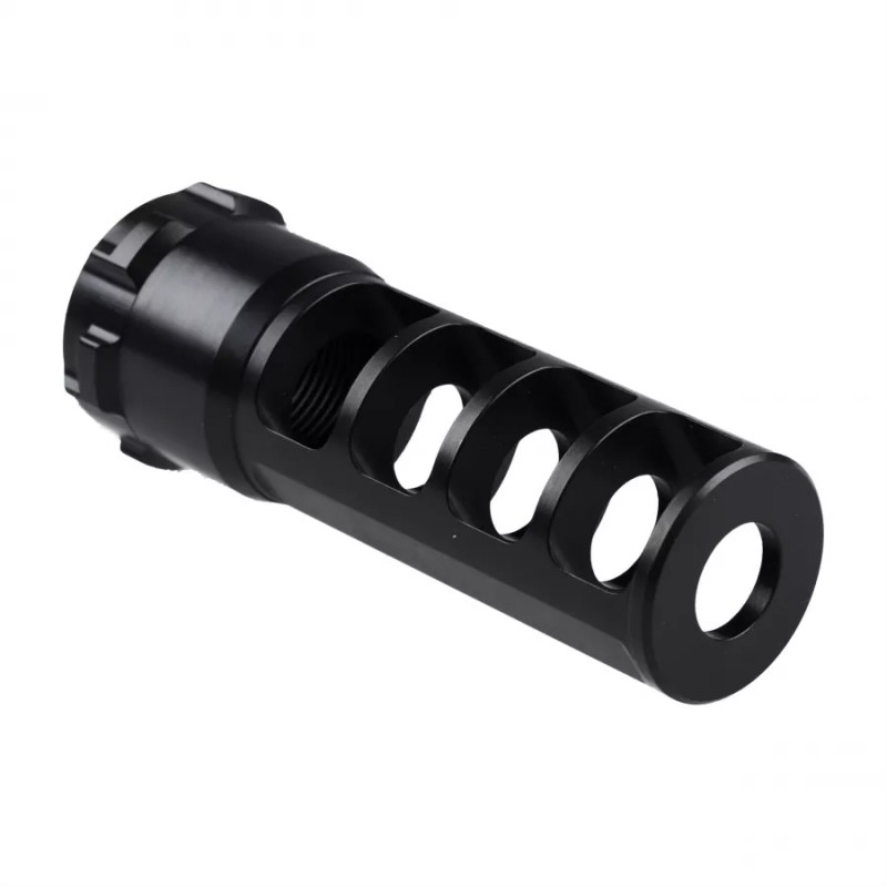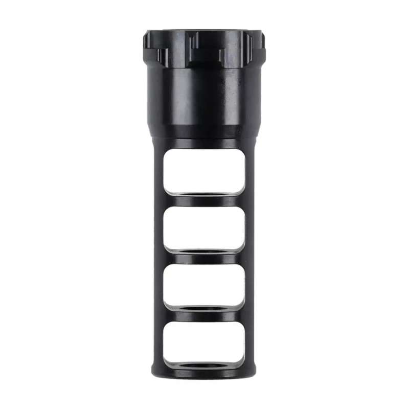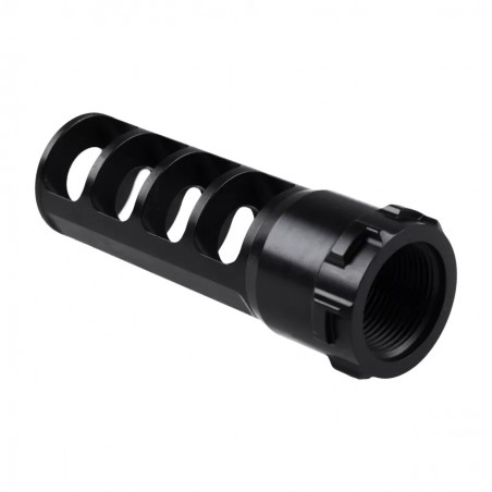 Cechy hamulca wylotowego Acheron HexaLug XL:Konstrukcja hamulca wykonana jest z wysokiej jakości stali węglowej, co gwarantuje wysoką trwałość i niezawodność. Dodatkowo, wykończenie azotowaniem QPQ pomaga ograniczyć negatywny wpływ gazów prochowych na stal, co przyczynia się do utrzymania urządzenia w dobrej kondycji.