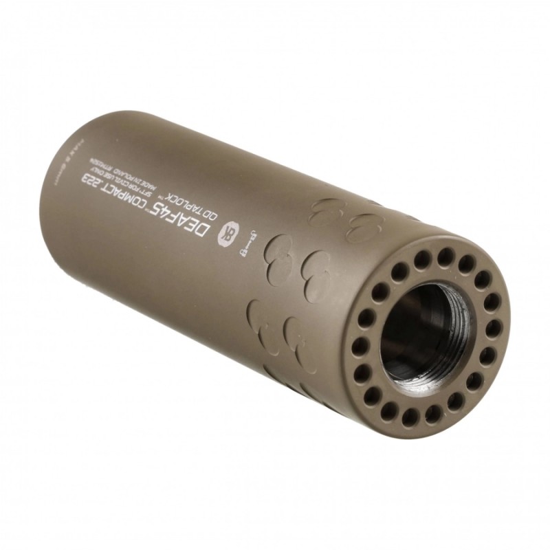 Tłumik dźwięku BK Precise DEAF45 COMPACT został skonstruowany z myślą o wykorzystaniu pod intensywnym ogniem na broni samopowtarzalnej. Wykorzystana technologia Side Flow nie tylko ogranicza odrzut, ale również przegazowanie broni, dzięki czemu podczas dynamicznych strzelań nie będziemy skazani na oddychanie gazami wentylującymi się przy naszej twarzy. Powierzchnia urządzenia została pokryta najpopularniejszym systemem powłok ceramicznych - Cerakote - który gwarantuje zabezpieczenie przed kwaśnym środowiskiem tworzonym przez pozostałości prochu. Bazowy hamulec wylotowy otrzymał natomiast elektrochemiczną powłokę Tenifer, zabezpieczającą go zarówno przed korozją, jak i wycieraniem pod wpływem kontaktu z tłumikiem.