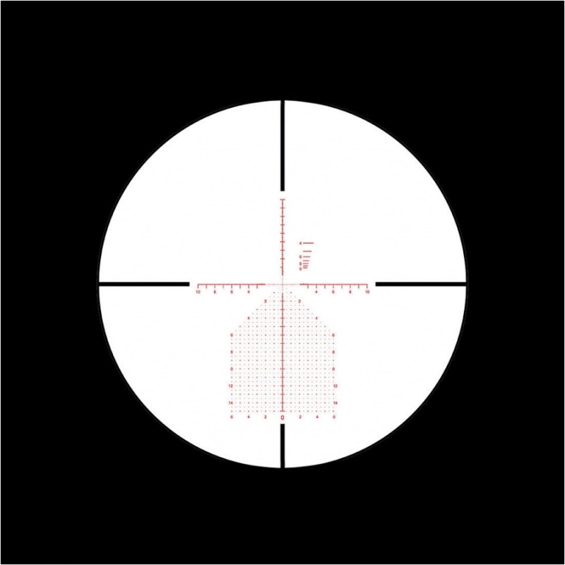 Luneta została wyposażona krzyż umieszczony w pierwszym planie optycznym, co jest optymalnym wyborem do przewidzianych dla niej zastosowań. Rozwiązanie tego typu zachowuje realne proporcje znaku celowniczego podczas zmiany powiększenia, dzięki czemu umożliwia wiarygodną ocenę odległości do celu. Ponadto w przypadku powiększeń z dołu zakresu krzyż pozostaje niewielki, nie rozpraszając nas ilością detali i pozwalając na szybkie przenoszenie pomiędzy celami. Omawiany model oferuje przeznaczony do precyzyjnych strzelań krzyż ACSS Athena opatentowany przez firmę Primary Arms. Siatka obejmuje centralny szewron, krzyż MIL-DOT, oraz analogowy dalmierz.