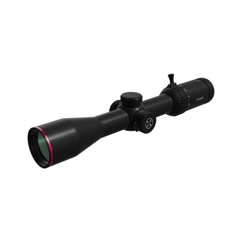 Wieże balistyczne wyskalowane w systemie 1 klik = 1 cm na 100 m pozwalają na błyskawiczne i precyzyjne nanoszenie poprawek. Z kolei brak efektu tuby już przy powiększeniu 1,5x sprawia, że obraz pozostaje naturalny, pełen detali i wolny od zniekształceń – jak w profesjonalnych lunetach klasy premium.