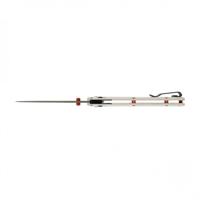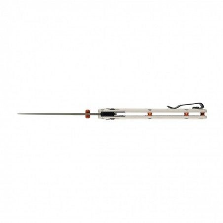 Dyskretne przenoszenie noża w kieszeni umożliwia klips Mini Deep Carry z możliwością zamocowania po dwóch stronach okładzin. W rękojeści ulokowano również otwór umożliwiający przeplecenie linki lub oplotu z paracordu.