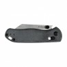 Okładziny rękojeści przytwierdzone do stalowych linersów wykonano z Micarty, która zapewnia nie tylko nowoczesny, przykuwający wzrok wygląd, ale przede wszystkim pewny chwyt w każdych warunkach, również mokrą lub brudną dłonią. Micarta jest lekka, odporna na wilgoć i zanieczyszczenia, a przy tym przyjemna w dotyku.