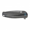 Okładziny Kizer Gemini V3471N3 wykonano z micarty o szorstkiej antypoślizgowej fakturze. Nóż wyposażony został w blokadę liner lock, łączącą w sobie bezpieczeństwo z łatwością zwalniania, dla zapewnienia przyjaznej obsługi. Głownia natomiast została osadzona na systemie łożysk, co sprawia, że nóż otwiera się wyjątkowo łatwo i płynnie. W połączeniu z zastosowanym flipperem umożliwia to szybkie, oburęczne otwarcie, zatem sprawdzi się również w przypadku osób leworęcznych.