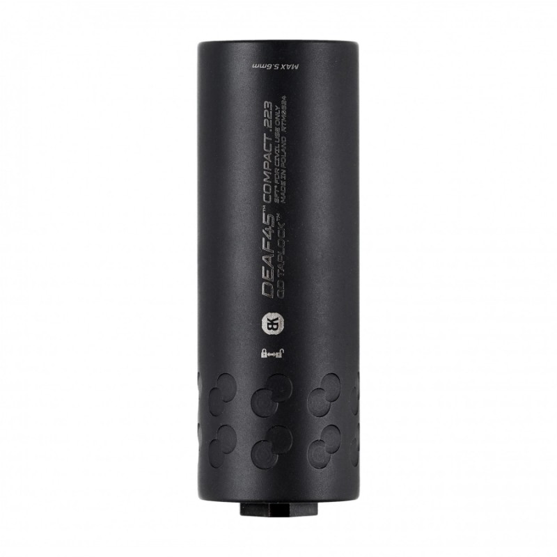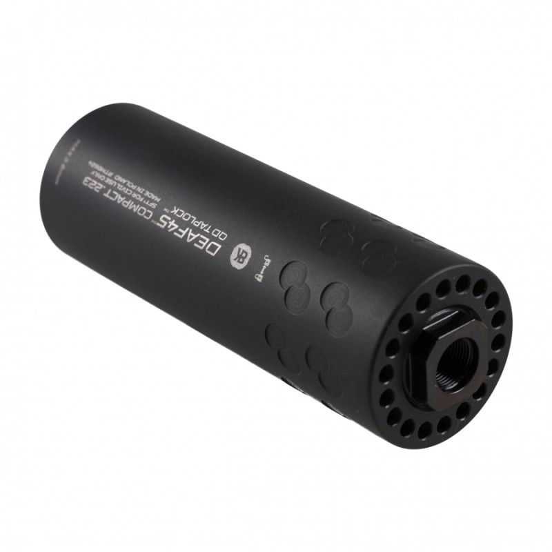 Zestaw kompaktowego łumika dźwięku współpracującego za pomocą systemu QD z dołączonym urządzeniem wylotowym to idealne rozwiązanie dla każdej osoby, zajmującej się strzelectwem dynamicznym. Połączenie skutecznej redukcji hałasu oraz niewielkich wymiarów z systemami zapewniającymi możliwie komfortową pracę na wytłumionej broni sprawiają, że moderator BK Precise DEAF45 COMPACT QD Taplock doskonale sprawdzi się wszędzie tam, gdzie spodziewamy się dużej intensywności ognia. Wersja z hamulcem wylotowym dostosowana do użycia na broni z gwintem ½-28 UNEF.