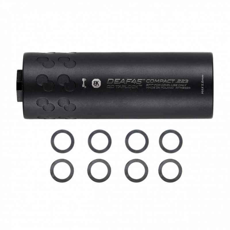 Kompaktowy tłumik dźwięku BK Precise DEAF45 QD Taplock oferuje użytkownikowi