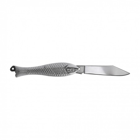 Scyzoryk Mikov Fishlet 130 CLASSIC 130-NZn-1 to legenda wśród składanych noży kieszonkowych produkcji renomowanej, czeskiej marki Mikov. Jest to popularna Rybička, które kiedyś praktycznie każdy z nas miał w swoim posiadaniu. Pierwszy nóż o charakterystycznej rękojeści w kształcie ryby powstał ponad 100 lat temu. Dziś kształt nie uległ zmianie, natomiast chwyt został wykonany z lekkiego stopu cynku w miejsce drewna. Ostrze noża wykonane jest ze stali nierdzewnej 420 o twardości na poziomie 52-55 HRC. Do noża można doczepić linkę lub smycz. Dzięki swoim rozmiarom zmieści się w każdej kieszeni czy przyborniku.