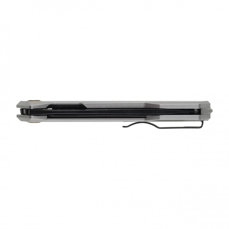 Rękojeść wykonana z anodowanego aluminium lotniczego jest nie tylko lekka i wytrzymała, ale też znakomicie leży w dłoni. Wycięcia i subtelny wzór poprawiają chwyt, a smukły profil sprawia, że nóż łatwo mieści się w kieszeni. Dzięki przemyślanej konstrukcji P166-AK waży 127 g, co czyni go idealnym folderem EDC, na którym możemy zawsze polegać.