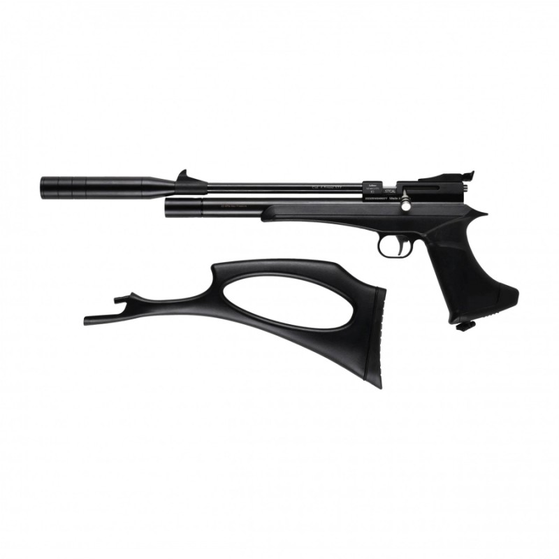Diana Bandit Black PCP to pistolet, który łączy w sobie rasowy wygląd i precyzję – stworzony dla tych, którzy oczekują od wiatrówki więcej niż tylko rozrywki. Gdy chwycisz go w dłoń, poczujesz solidność konstrukcji i gotowość do działania; każdy strzał to satysfakcja płynąca z dobrze zaprojektowanego mechanizmu i stabilnego odrzutu. To broń dla strzelców ceniących elastyczność: tryb pojedynczego ognia, bębenek na 9 śrucin i odkręcany tłumik dają swobodę dopasowania do zadania – od treningu po rekreacyjną popołudniową zabawę.