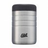 Termos ESBIT Food Jug Majoris to pojemnik obiadowy o pojemności 0,4 L w kolorze srebrnym. Został wykonany z najwyższej jakości stali nierdzewnej. Dla zabezpieczenia przed przypadkowym upuszczeniem termosu, co może mieć miejsce, gdy trzymamy go w zmarzniętej dłoni lub rękawiczce, wnętrze pokryto specjalną, matową powłoką antypoślizgową. Również wymiary termosu zostały tak dobrane, aby manipulowanie nim nie powodowało żadnych trudności. Niezależnie od pojemności ma on także tę samą średnicę, różni się tylko wysokością.
