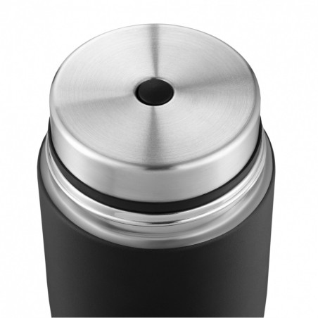 Termos posiada podwójne zamknięcie — zakrętkę i nakrętkę. Tę pierwszą wyposażono w centralnie położony przycisk. Pełni on funkcję zaworu bezpieczeństwa. Przyciskając go, można wyrównać ciśnienie wewnątrz pojemnika. Po pierwsze pomaga to otworzyć termos. Po drugie zapobiega poparzeniu parą, która wydostaje się z wnętrza. Nakrętka ma podwójną funkcję – uszczelnia termos, a jeśli właściciel sobie tego życzy, staje się miską. Bez wątpienia jest to wygodne rozwiązanie.