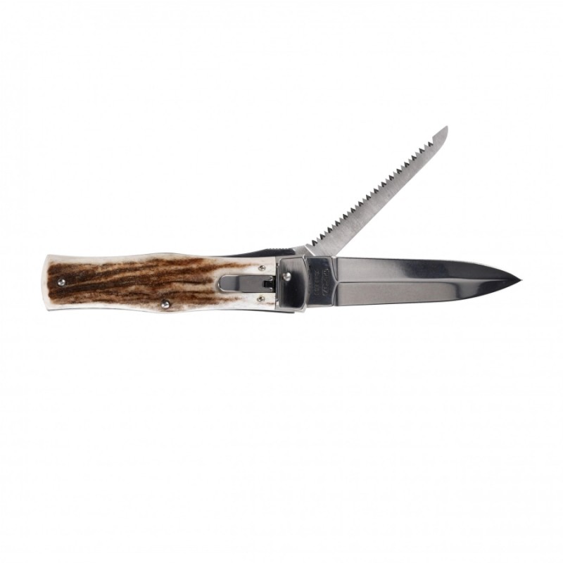 Mikov Predator 241-NP-2/KP to legendarny nóż automatyczny, który łączy pancerną solidność z niezawodnością działania w każdej sytuacji. Jego mocna konstrukcja gwarantuje długowieczność i pewność działania, nawet w wymagających warunkach. Zintegrowana piłka do drewna czyni z niego wszechstronne narzędzie – idealne do prac obozowych, przygotowania opału na działce czy codziennych zadań, w których liczy się funkcjonalność i gotowość do działania.