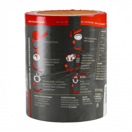 Zintegrowany, bezpieczny system podgrzewania działa w każdych warunkach – wystarczy aktywować go w puszce. Pod wieczkiem czeka zestaw „ready to eat”: sól, pieprz i wilgotna serwetka. Produkt jest sterylizowany i bez konserwantów, więc świetnie sprawdzi się w ekwipunku survivalowym, w samochodzie, na wyprawie i jako domowy zapas żywności.