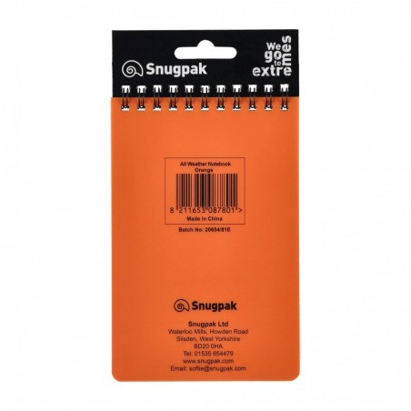 Notes wodoodporny Snugpak eliminuje częsty problem każdego pasjonata outdooru, związany z nieczytelnymi notatkami, a także mokrym i rozdartym papierem, uniemożliwiającym zapis informacji. Impregnowany papier notatnika Snugpak umożliwia zapisanie informacji podczas ulewy, śnieżycy, a także po zanurzeniu w wodzie. Do pisania zaleca się stosowanie ołówka 2B oraz długopisów z wodoodpornym tuszem.