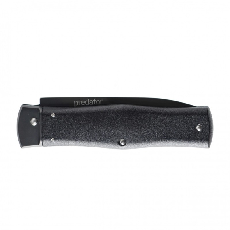 Sercem noża Mikov Predator Blackout jest głownia o długości 95 mm, wykonana z austriackiej stali Böhler N690 — materiału klasy premium, znanego ze swojej wyjątkowej odporności na korozję i długiego trzymania ostrości. Szlif płaski i profil Spear Point sprawiają, że ostrze tnie precyzyjnie, gładko i skutecznie niezależnie od rodzaju materiału.