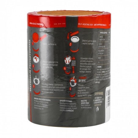 Niezawodny system podgrzewania działa w deszczu i na mrozie, a pod plastikowym wieczkiem znajdziesz sól, pieprz i wilgotną serwetkę – jesz wygodnie zawsze i wszędzie. Sterylizacja bez konserwantów dba o bezpieczeństwo i trwałość, a kompaktowa puszka łatwo mieści się w plecaku, skrzynce w aucie lub zestawie survivalowym. Idealne na długie wyprawy, poligon, nocny dyżur czy zimowe wędrówki.
