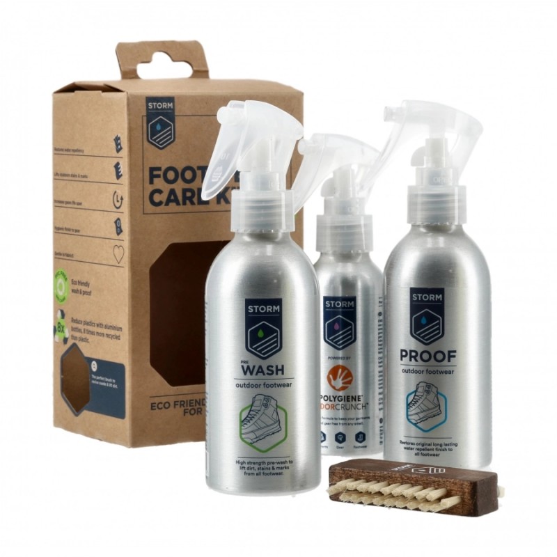 Linia Storm Care Ultimate została zaprojektowana z myślą o środowisku: kosmetyki otrzymujesz w aluminiowych, nadających się do recyklingu butelkach, a w zestawie znajdziesz szczotkę krepową do zamszu. Prosta procedura (pre-wash → impregnacja → odświeżenie) wydłuża żywotność obuwia i zachowuje jego właściwości użytkowe przez wiele sezonów.