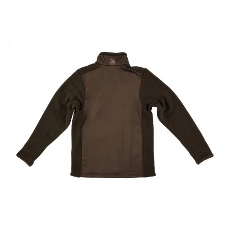 Rękawy, boki tułowia i górna część pleców wykonane są z grubego, ciepłego polaru z poliestru, który trzyma temperaturę bez zbędnej objętości. Wysoka stójka osłania szyję przed podmuchami, a zamek na całej długości pozwala szybko regulować wentylację – od intensywnego podejścia po postój na odpoczynek.