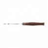 Nóż ma stylową rękojeść z naturalnego drewna wzbogaconą wkładką z czerwonego tworzywa G10. Przed wyślizgnięciem się noża z dłoni chroni zintegrowany jelec o ergonomicznym kształcie. W rękojeści znajduje się otwór na linkę zabezpieczającą. Do bezpiecznego przenoszenia noża przy pasie służy pochewka z licowanej skóry zapinaną na metalową napę.