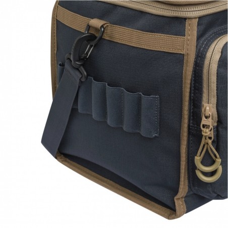 W torbie zmieścisz 6 pudełek po 25 nabojów, co czyni ją doskonałym wyborem na dłuższe treningi strzeleckie i polowania. Dwie boczne kieszenie zapinane na solidne zamki YKK oraz dodatkowa przednia kieszeń pozwalają na wygodne przenoszenie czoków, zbijaków i innych akcesoriów. Całość wykonana z wytrzymałego poliestru, odpornego na uszkodzenia i warunki atmosferyczne.
