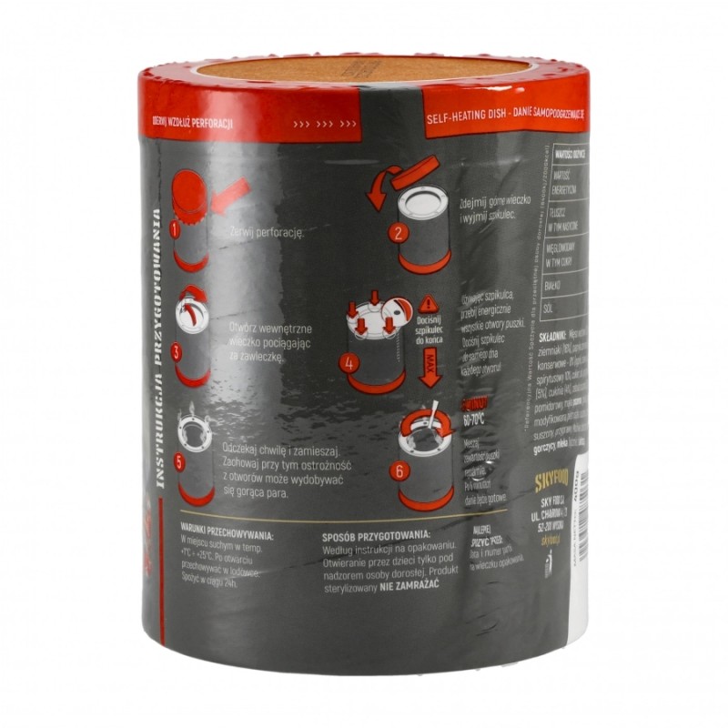 Ciepły, domowy posiłek w środku trasy – bez kuchenki, ognia i prądu? To możliwe! Samopodgrzewające danie SKYFOOD rozgrzewa w ok. 6 minut i natychmiast stawia na nogi podczas trekkingu, biwaku czy długiego dyżuru. Soczyste kawałki wieprzowiny (32%) z ziemniakami, papryką i pieczarkami tworzą sycącą, aromatyczną porcję energii, która wygrywa z pogodą i zmęczeniem. To nie tylko przekąski turystyczne – to pełnowartościowy obiad gotowy zawsze i wszędzie.