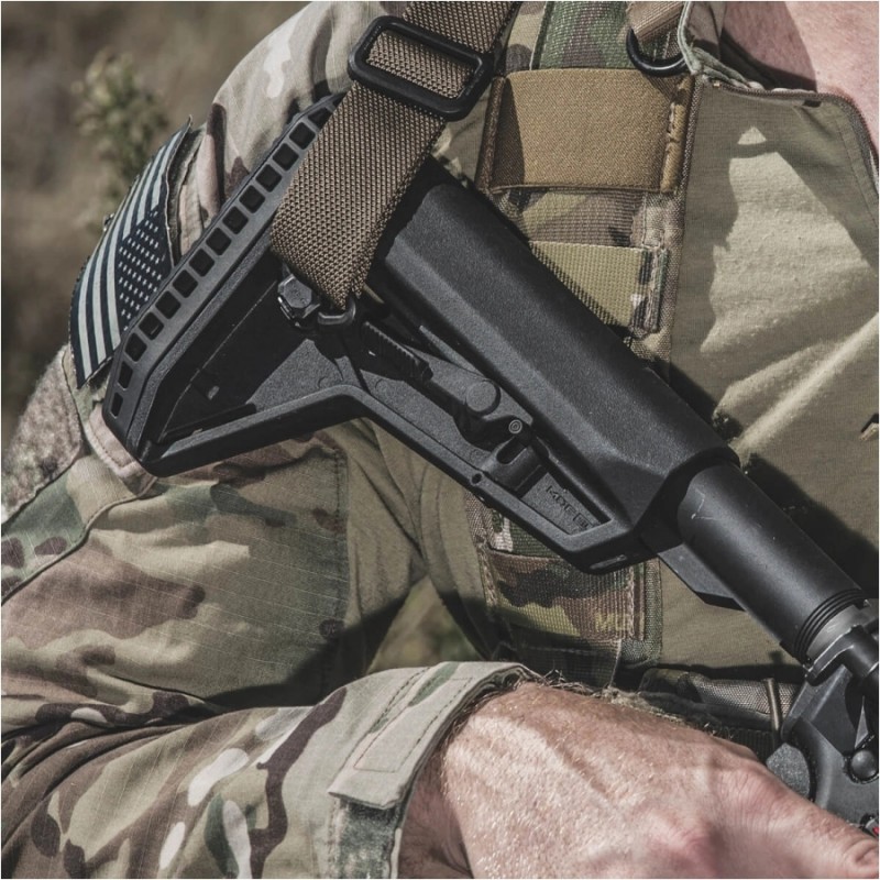 Kolba MOE® S™ Carbine Stock AR-15/M4 Mil-Spec posiada atrakcyjny design, który odświeża wygląd karabinka i doskonale sprawdzi się w konfiguracjach PDW. Kolba jest kompatybilna z uchwytami zawieszeń Magpul ASAP®, ASAP® QD i innymi montowanymi na komorze spustowej. Otwór na taśmę zawieszenia o szerokości 1.25” pozwala na montaż klasycznych zawieszeń taktycznych, natomiast port QD przeznaczony jest do modeli z klamrą w tym standardzie.
