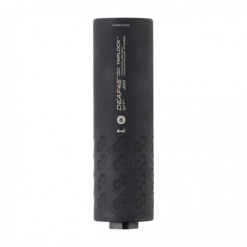 Tłumik dźwięku BK Precise DEAF45 został skonstruowany z myślą o wykorzystaniu pod intensywnym ogniem na broni samopowtarzalnej. Wykorzystana technologia Side Flow nie tylko ogranicza odrzut, ale również przegazowanie broni, dzięki czemu podczas dynamicznych strzelań nie będziemy skazani na oddychanie gazami wentylującymi się przy naszej twarzy. Powierzchnia urządzenia została pokryta najpopularniejszym systemem powłok ceramicznych - Cerakote - który gwarantuje zabezpieczenie przed kwaśnym środowiskiem tworzonym przez pozostałości prochu. Bazowy hamulec wylotowy otrzymał natomiast elektrochemiczną powłokę Tenifer, zabezpieczającą go zarówno przed korozją, jak i wycieraniem pod wpływem kontaktu z tłumikiem.