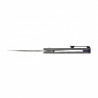 Otwieranie noża to czysta przyjemność – nóż składany Topsail można rozłożyć za pomocą front flippera lub otworu w klindze, co daje pełną kontrolę i płynność ruchu. Dzięki łożyskowanemu pivotowi ostrze otwiera się błyskawicznie i bez najmniejszego oporu, a blokada Frame Lock wykonana z tytanu zapewnia absolutne bezpieczeństwo podczas pracy. To mechanika, która łączy precyzję z intuicyjnością – każdy ruch jest płynny, pewny i satysfakcjonujący.