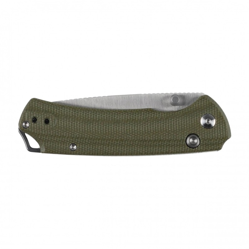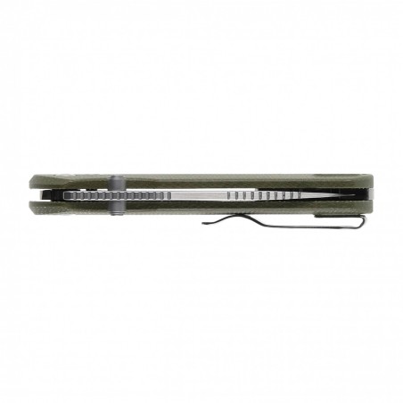 Okładziny w folderze Kizer T1 BD wykonano z Micarty, czyli kompozytu powstałego z połączenia płótna prasowanego pod ciśnieniem z syntetyczną żywicą. Wygładzone krawędzie okładzin oraz podcięcie na palec (fore finger groove) poprawia pewność uchwytu i sprawiają, że nóż dobrze leży nawet w zmęczonych i spoconych dłoniach.