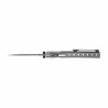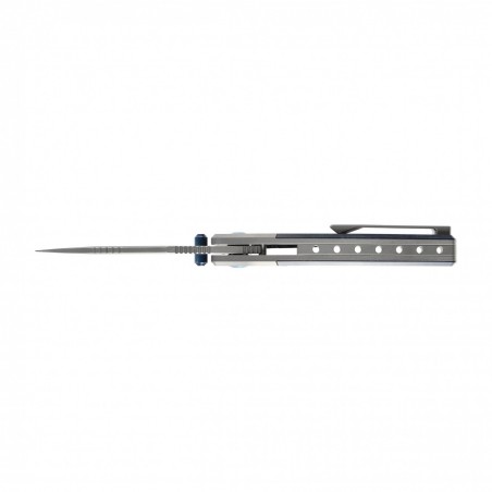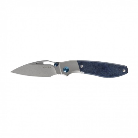 Rękojeść noża Kizer Shrike łączy szarą, tytanową konstrukcję z eleganckimi okładzinami z Richlite, tworząc doskonały balans między trwałością a estetyką. Tytanowe bolstery zapewniają wyjątkową wytrzymałość i stabilność, podczas gdy Richlite — materiał o ciepłej, przyjemnej fakturze — gwarantuje pewny, komfortowy chwyt. To harmonijne połączenie nowoczesnego designu z funkcjonalnością, które sprawia, że każdy kontakt z nożem jest czystą przyjemnością.