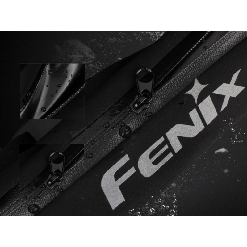 Fenix AFB-10 ma wodoodporny zamek błyskawiczny oraz wewnętrzną warstwę z tworzywa TPU, dzięki czemu przenoszona zawartość jest należycie zabezpieczona przed deszczem i wilgocią. W tylnej części torby znajduje się dyskretny otwór na przewód słuchawek, dlatego podczas joggingu możemy cieszyć się naszą ulubioną muzyką oraz wygodnie prowadzić rozmowę.