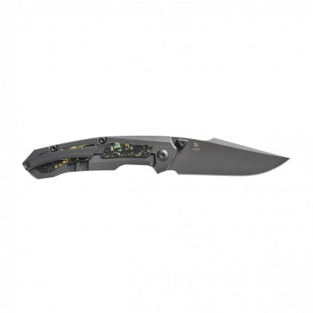 Kizer Feweed Ki3694A2 to noż składany łączący nowoczesny design z bezkompromisową funkcjonalnością. Głownia o profilu harpoon daje intuicyjne oparcie pod kciuk, więc cięcie kartonu, plastiku czy precyzyjne podważanie idzie szybko i pod pełną kontrolą. Tytanowy szkielet z dekoracyjnymi wstawkami z włókna węglowego „Toxic Storm” tworzy konstrukcję lekką, sztywną i wytrzymałą – dokładnie taką, jakiej oczekujesz od segmentu premium w kategorii noże składane.