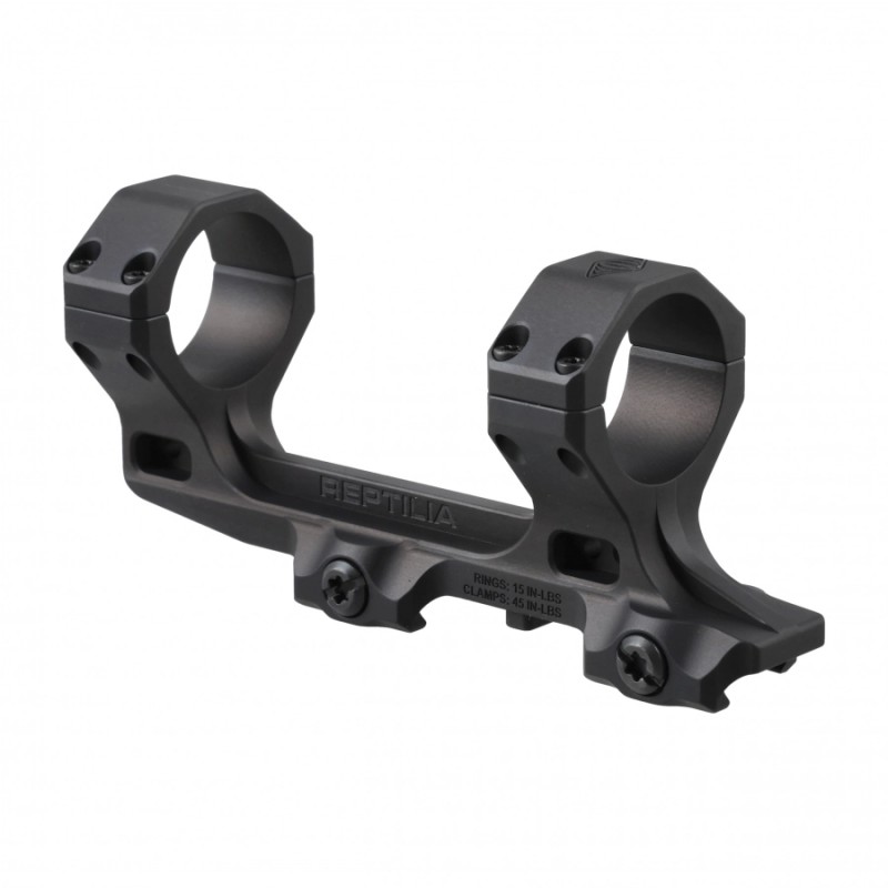 Jednoczęściowy montaż Reptilia AUS Mount o wysokości 39 mm (1,54 cala) do lunet celowniczych o średnicy tubusu wynoszącym 30 mm. Jest to mocowanie niskoprofilowe wykonane z lekkiego bloku aluminium lotniczego 7075-T6 wykończonego twardą anodyzacją w standardzie MIL-STD Type III. Co istotne, montaż ten został zaprojektowany tak, aby, wytrzymał nawet silny odrzut broni bez ryzyka utraty punktu zerowego. Regulacja docisku dwóch obejm lunety odbywa się za pomocą 4 śrub imbusowych. Montaż na szynie 22 mm odbywa się za pomocą opatentowanych stalowych zacisków sprężynujących oraz dwóch śrub. Zapewnia to solidne i trwałe połączenie lunety z bronią.