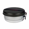 Osłony przeciwwiatrowe (górna i dolna) stabilizują płomień i chronią go przed podmuchami, dzięki czemu zużywasz mniej paliwa i gotujesz szybciej. Dwa garnki o litrowej objętości pozwalają jednoczesne przygotowywanie dwóch potraw. Patelnię wyłożono powłoką Non-Stick, więc jajecznica, naleśniki czy dodatki do żywności turystycznej nie przywierają, a czyszczenie zajmuje chwilę.