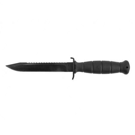 Metalowy jelec chroni rękę przed niekontrolowanym zsunięciem na ostrze. Jedna ze stron jelca służy jako otwieracz do butelek. Pochwa wykonana jest z tego samego polimeru co rękojeść. Posiada mocny klips, który nie pozwoli na wysunięcie noża. Zapięcie do paska jest tak skonstruowane by szybko zapiąć bez przeplatania przez cały pasek. Polecany na wypady survivalowe i dla kolekcjonerów.