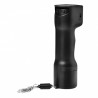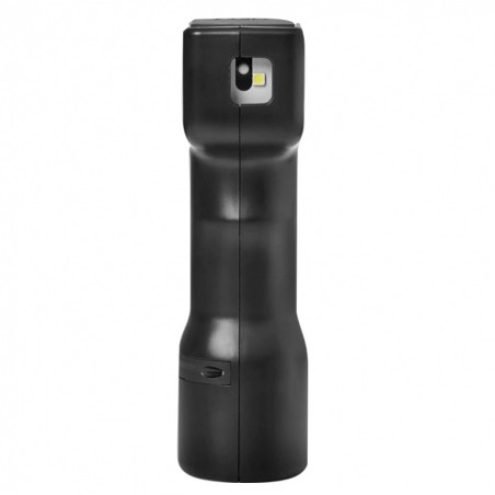 Alarm o głośności 130 dB oraz światło stroboskopowe o częstotliwości 19 Hz włączają się automatycznie po użyciu gazu i pozostają aktywne do momentu ich wyłączenia za pomocą ukrytego przełącznika. Głośna syrena oraz oślepiające strobo skutecznie odstraszają napastnika i zmuszając do ucieczki z miejsca zdarzenia.