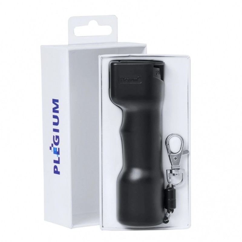 Plegium black to innowacyjny gaz pieprzowy typu smart, który za pośrednictwem bluetooth łączy się z telefonem i w chwili użycia miotacza automatycznie informuje naszych najbliższych o zaistniałym niebezpieczeństwie. Aplikacja odpowiada nie tylko za wykonanie alarmowego połączenia telefonicznego z głosową informację o zdarzeniu, wysyła również link z dokładną lokalizacją Google, dzięki czemu mamy dowód rzeczowy dla organów ścigania.